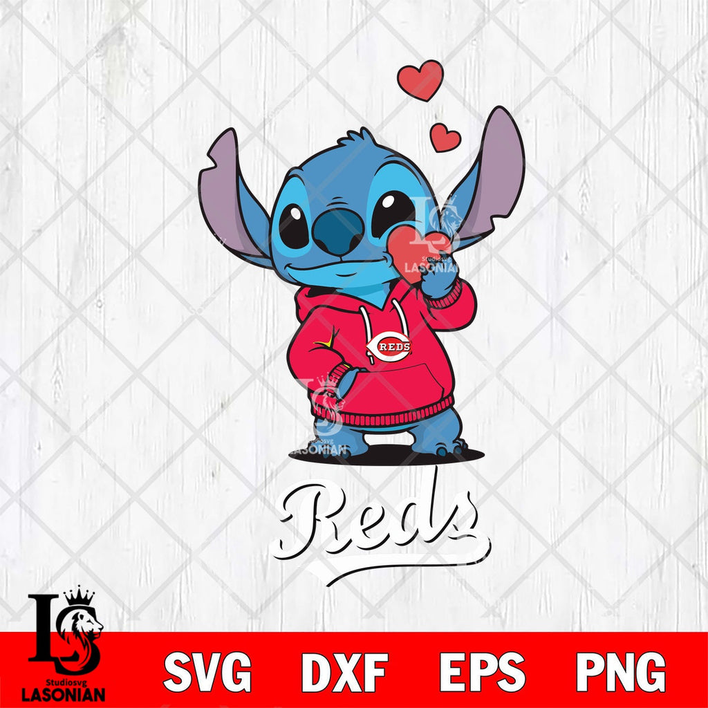 Plus, you can print these designs on a wide range of surfaces such as mugs, t-shirts, tumblers, flags, and more. Unleash your creativity and personalize your world with Cincinnati Reds Stitch love illustration File cut , Criucut , Digital Download, MLB SVG DXF EPS PNG PDF File