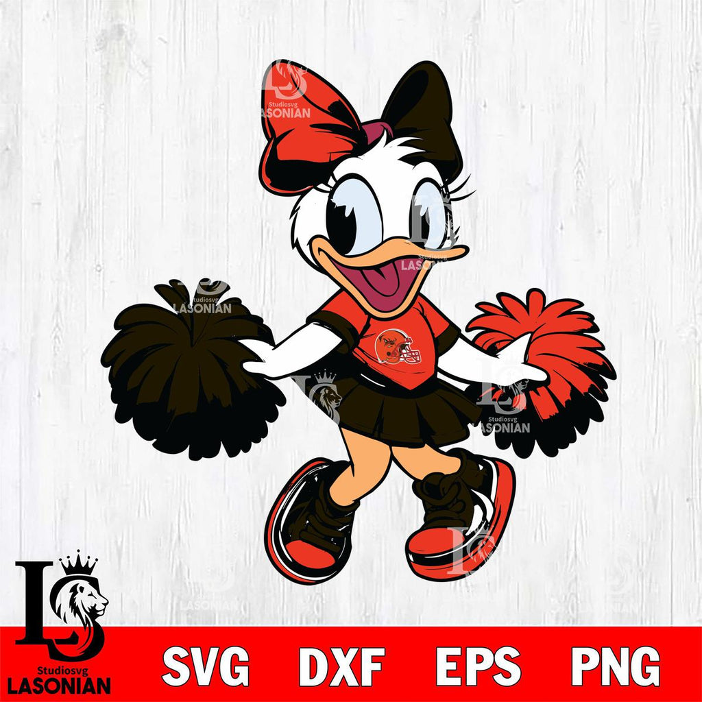Plus, you can print these designs on a wide range of surfaces such as mugs, t-shirts, tumblers, flags, and more. Unleash your creativity and personalize your world with Cleveland Browns Daisy Duck Cheerleader