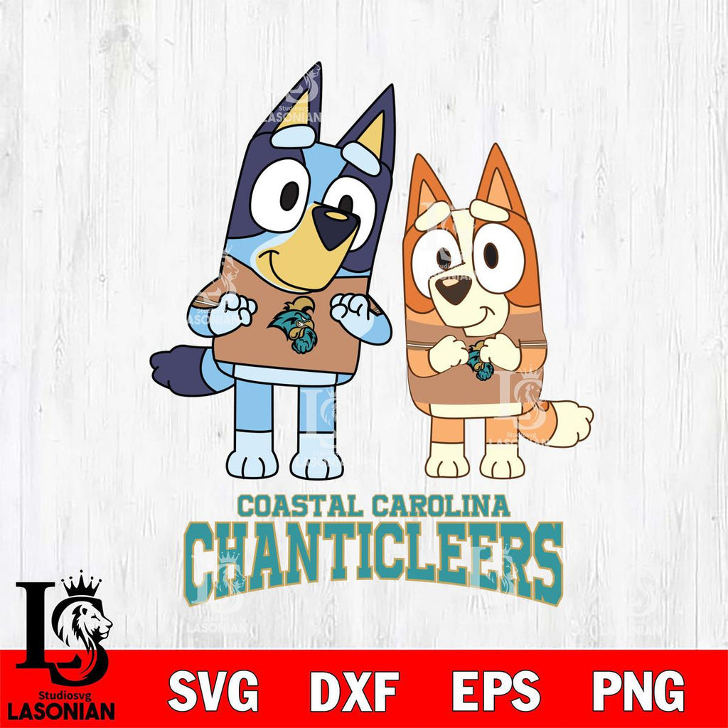 Plus, you can print these designs on a wide range of surfaces such as mugs, t-shirts, tumblers, flags, and more. Unleash your creativity and personalize your world with Coastal Carolina Chanticleers Bluey & Bingo 6