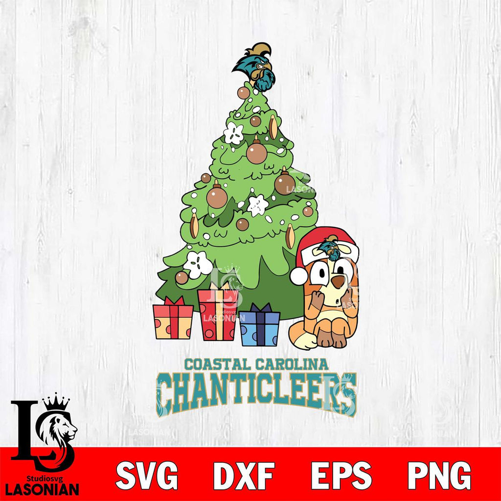 Plus, you can print these designs on a wide range of surfaces such as mugs, t-shirts, tumblers, flags, and more. Unleash your creativity and personalize your world with Coastal Carolina Chanticleers Bluey Chilli Christmas Tree