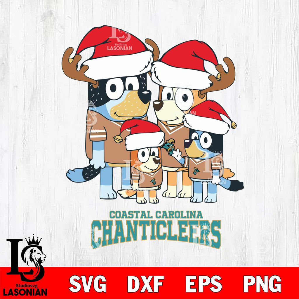 Plus, you can print these designs on a wide range of surfaces such as mugs, t-shirts, tumblers, flags, and more. Unleash your creativity and personalize your world with Coastal Carolina Chanticleers Christmas Bluey Santa Family
