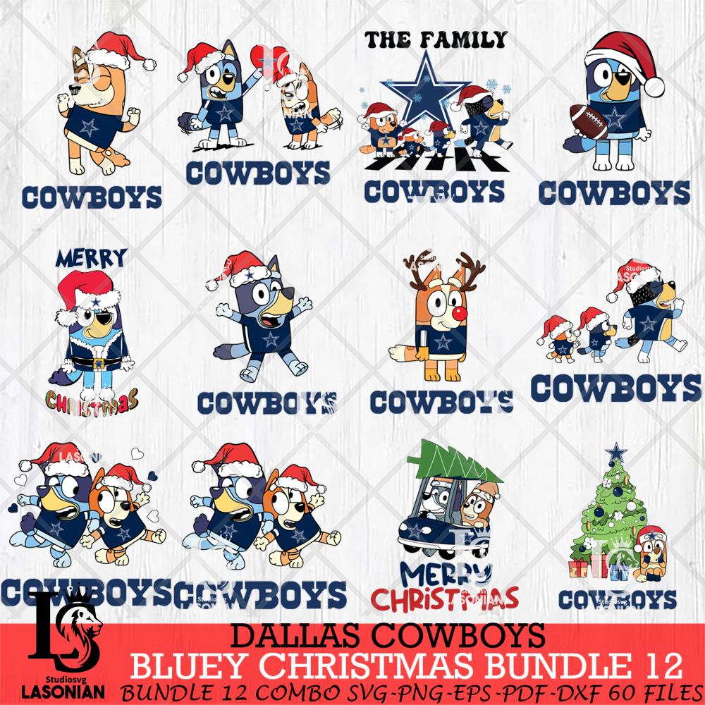 ►With the Dallas Cowboys Bluey Christmas Holiday Bundle 12, you can let your creativity run wild. This INSTANT DOWNLOAD package includes a ZIP folder containing the following: