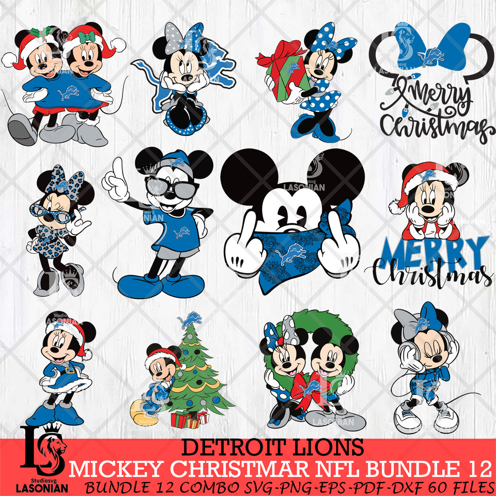 Detroit Lions MICKEY CHRISTMAS NFL Bundle 12 Svg Eps Dxf Png File, Digital Download, Instant Download