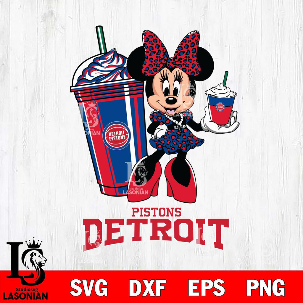 Detroit Pistons Minnie Mouse Fan And Coffee Svg Eps Dxf Png File, Digital Download, Instant Download