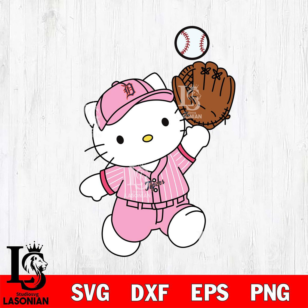 Detroit Tigers Hello kitty pink catch the baseball SVG DXF EPS PNG FILE, MLB File Cut,Hello Kitty Digital Download,Instant Download, Silhouette
