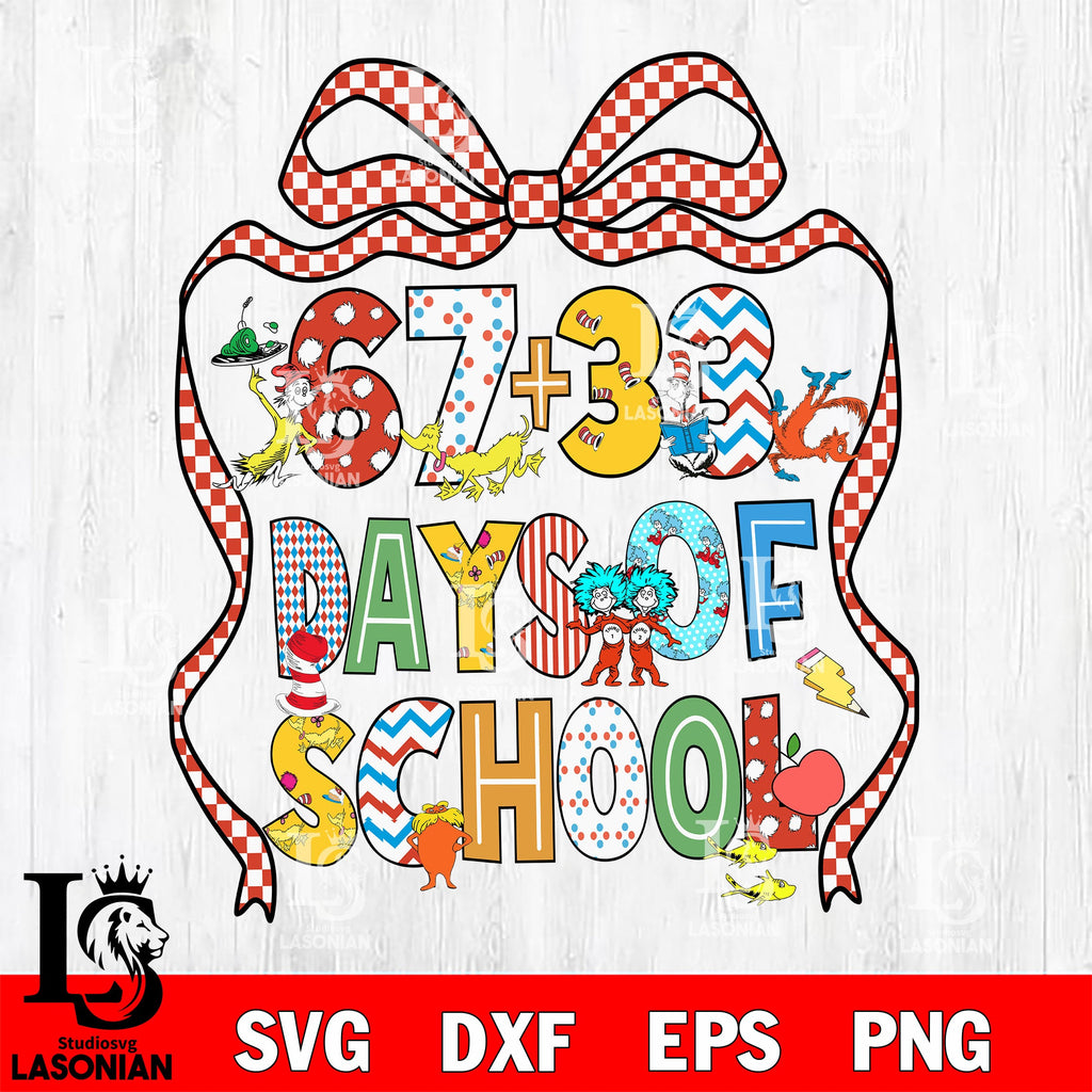 67 + 33 Days of School Digital Download , DR seuss File Cut, SVG DXF EPS PNG PDF File, Silhouette