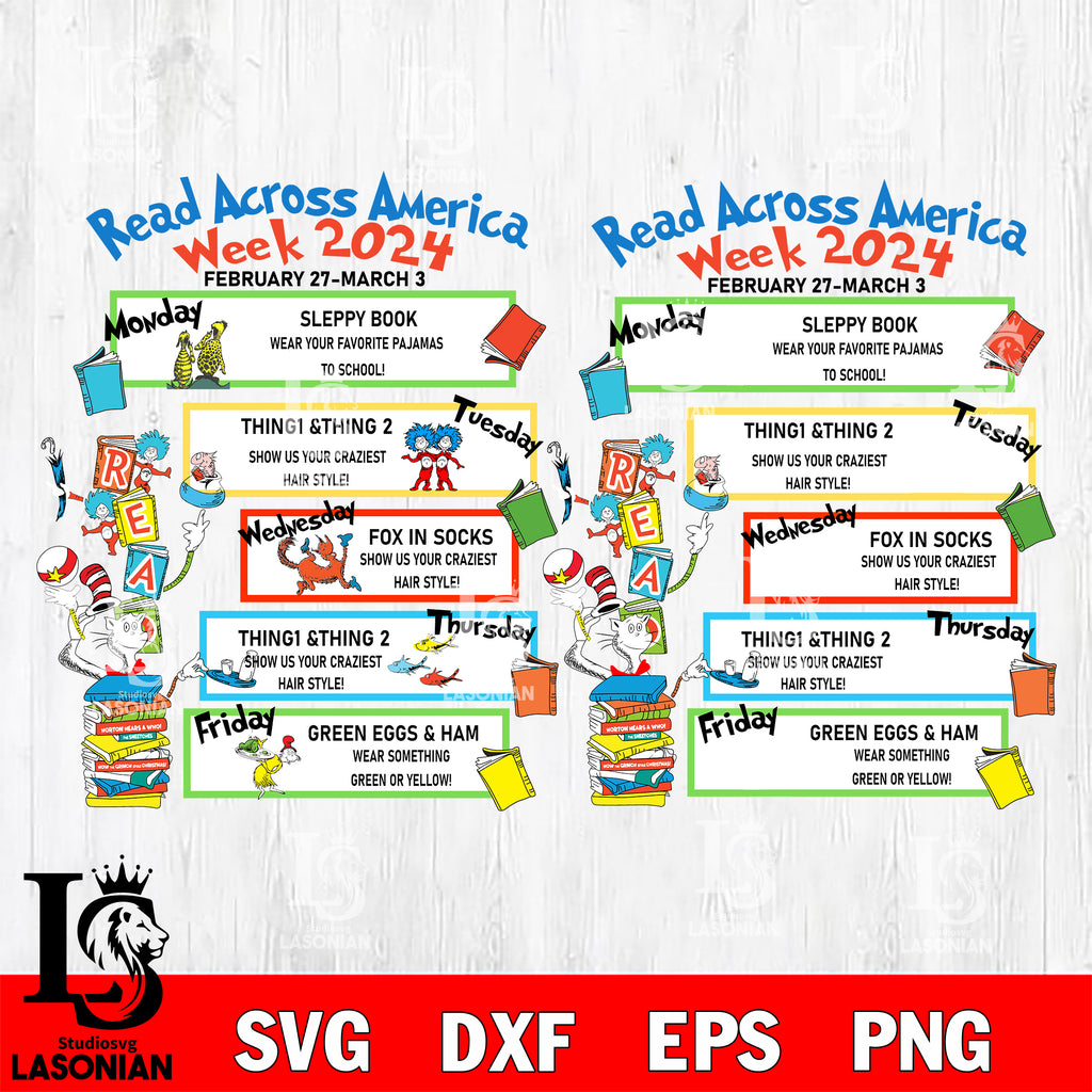 dr seuss svg, Read Across America Week 2024 svg , School Spirit Week Schedule School svg