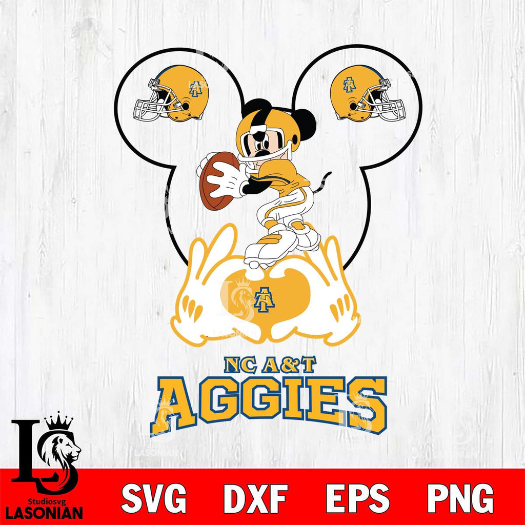 North Carolina A&T Mickey Heart Rugby Svg Eps Dxf Png File, Digital Download ,Instant Download, Cricut File