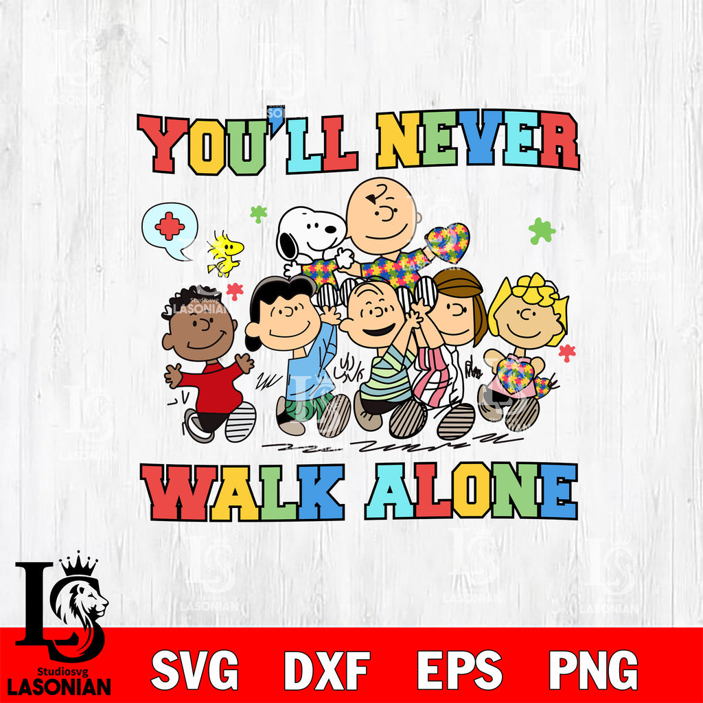 Snoopy autism You'll never walk alone Svg Eps Dxf Png File, File Cut,Digital Download,Instant Download, Svg Files