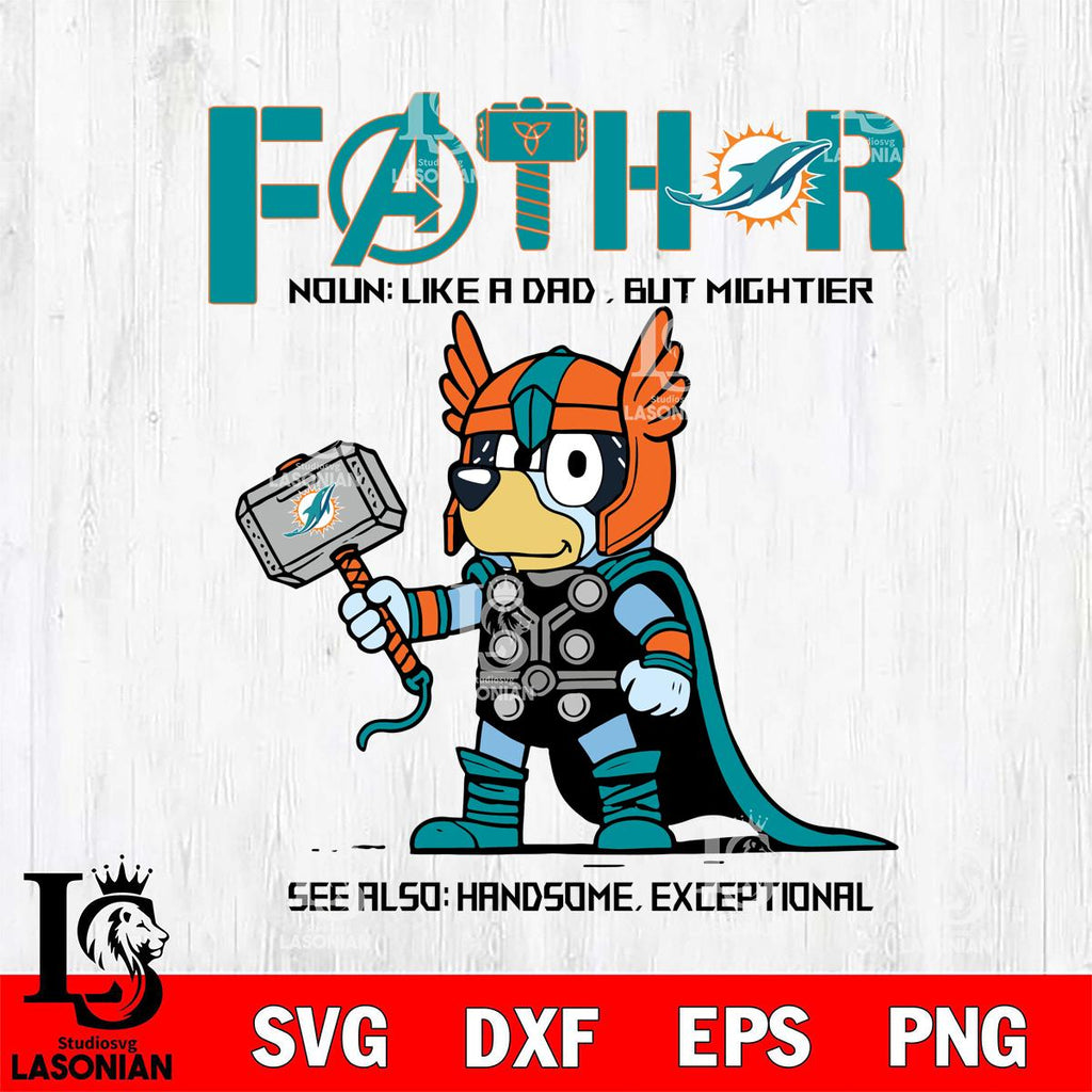 Plus, you can print these designs on a wide range of surfaces such as mugs, t-shirts, tumblers, flags, and more. Unleash your creativity and personalize your world with Miami Dolphins BLUEY FATHOR
