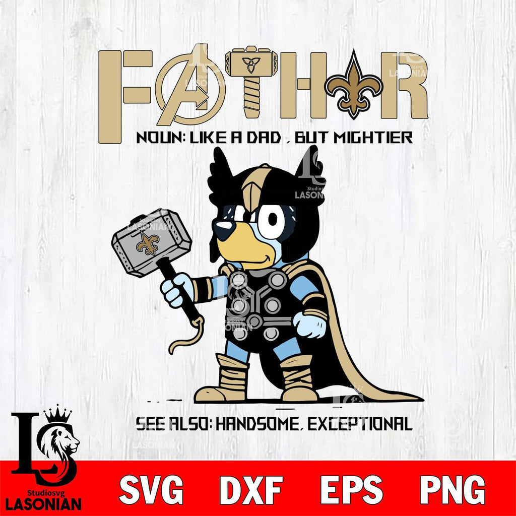 Plus, you can print these designs on a wide range of surfaces such as mugs, t-shirts, tumblers, flags, and more. Unleash your creativity and personalize your world with New Orleans Saints BLUEY FATHOR
