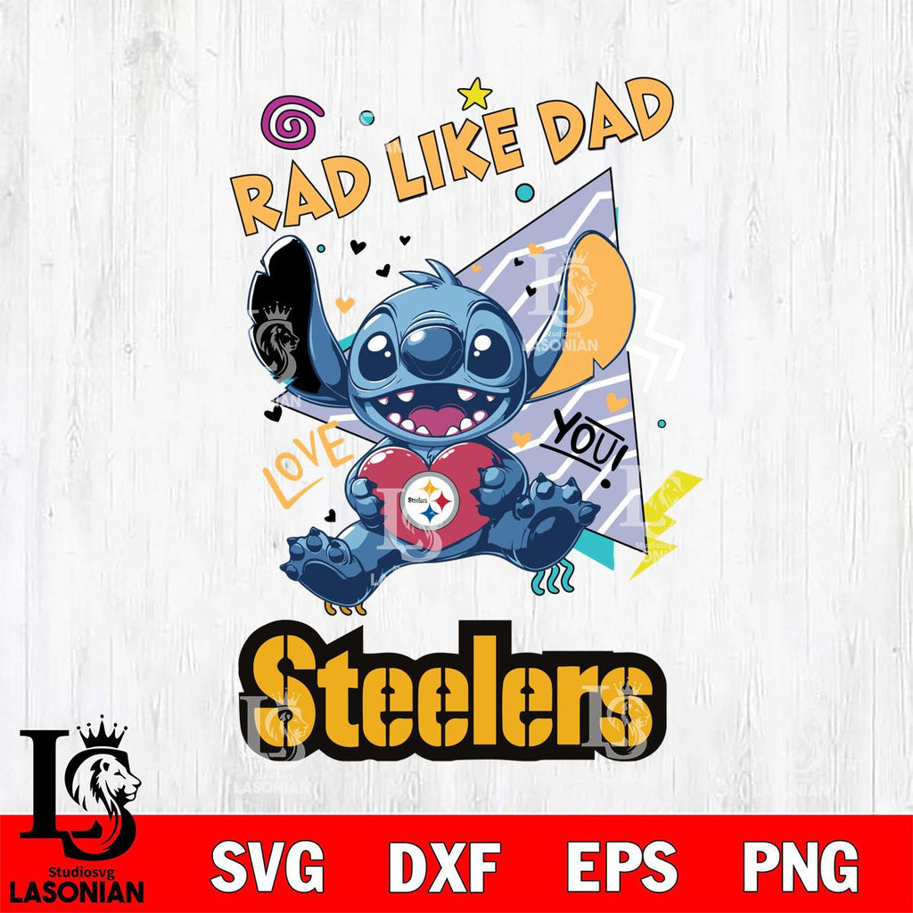Plus, you can print these designs on a wide range of surfaces such as mugs, t-shirts, tumblers, flags, and more. Unleash your creativity and personalize your world with Pittsburgh Steelers Stitch Love Rad Like Dad