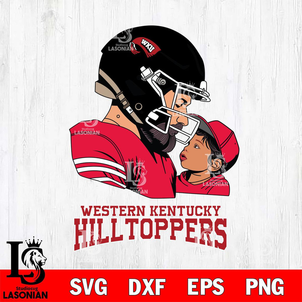 Plus, you can print these designs on a wide range of surfaces such as mugs, t-shirts, tumblers, flags, and more. Unleash your creativity and personalize your world with Western Kentucky Hilltoppers Father And Child Rugby