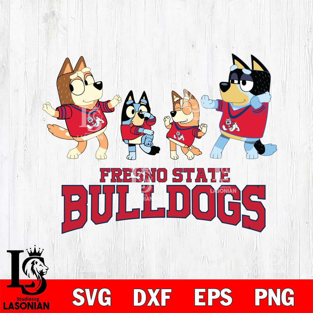 Plus, you can print these designs on a wide range of surfaces such as mugs, t-shirts, tumblers, flags, and more. Unleash your creativity and personalize your world with Fresno State Bulldogs Bluey Dance Squats