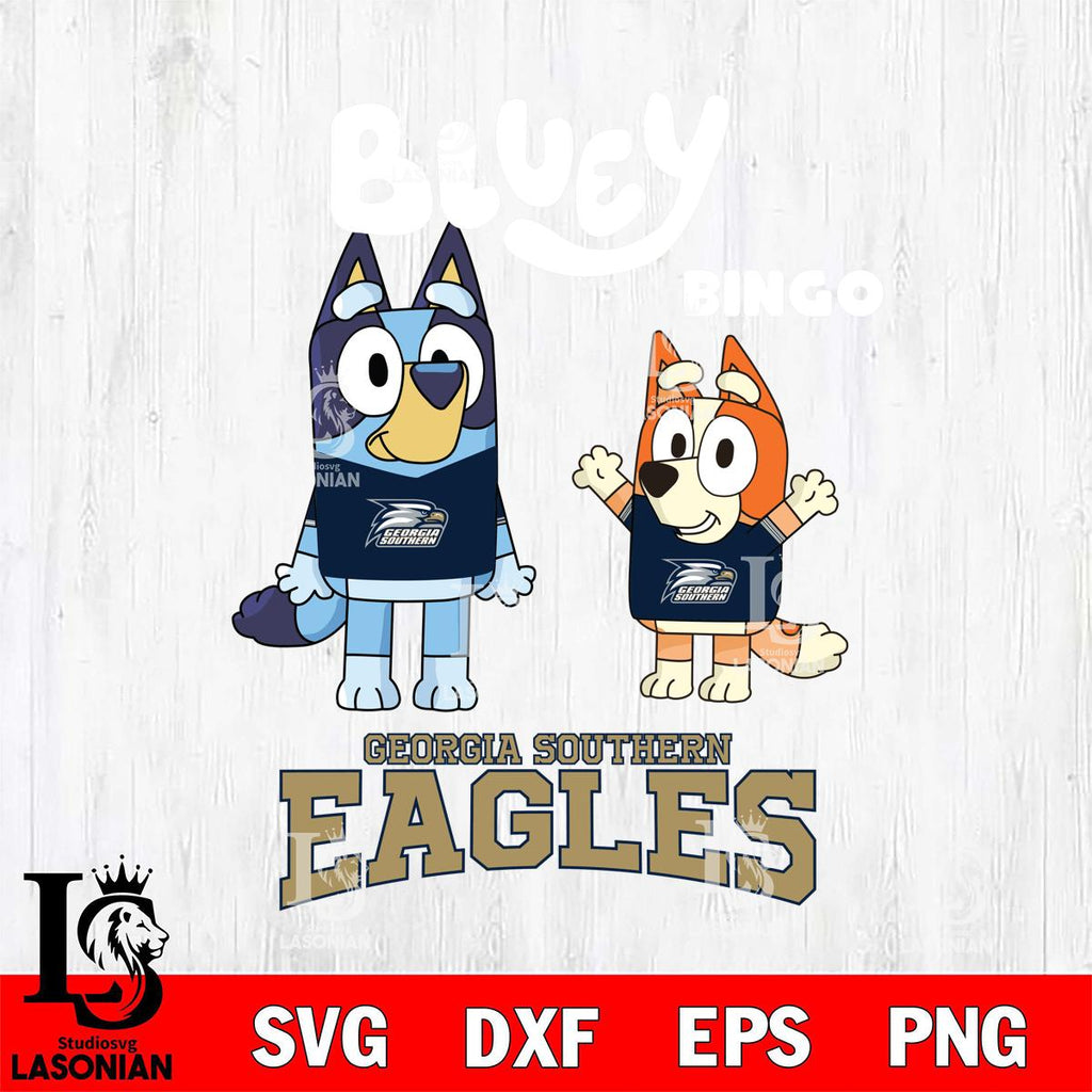 Plus, you can print these designs on a wide range of surfaces such as mugs, t-shirts, tumblers, flags, and more. Unleash your creativity and personalize your world with Georgia Southern Eagles Bluey & Bingo 4