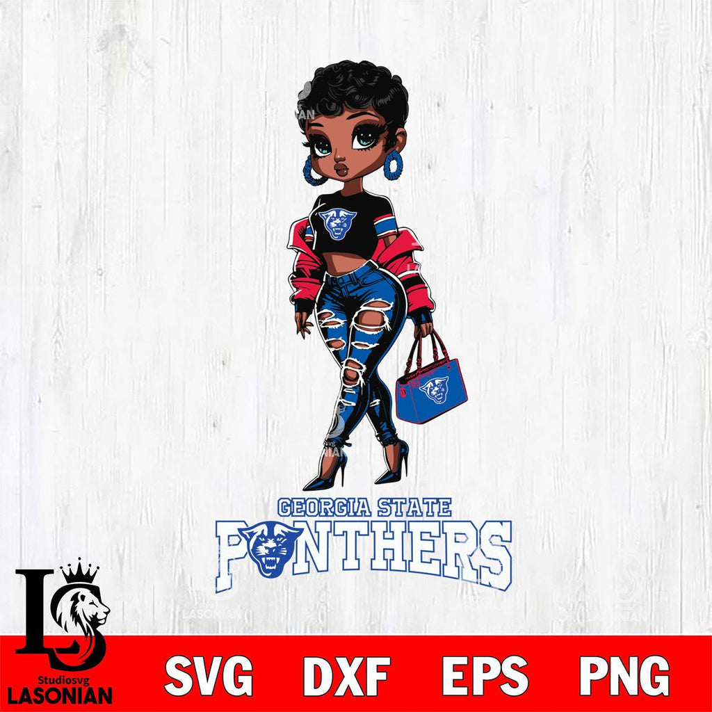 Georgia State Panthers Beautiful Black Fan Girl, Svg Eps Dxf Png File, Digital Download