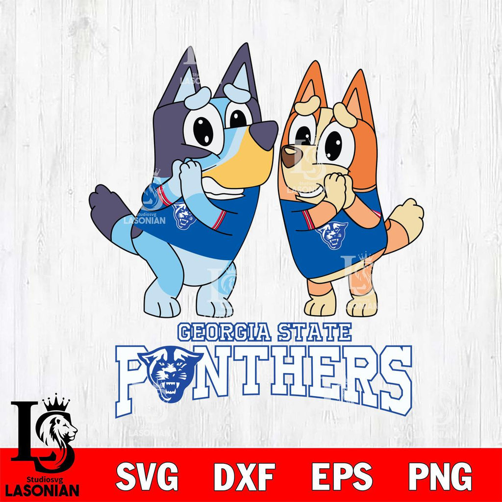 Plus, you can print these designs on a wide range of surfaces such as mugs, t-shirts, tumblers, flags, and more. Unleash your creativity and personalize your world with Georgia State Panthers Bluey & Bingo 5