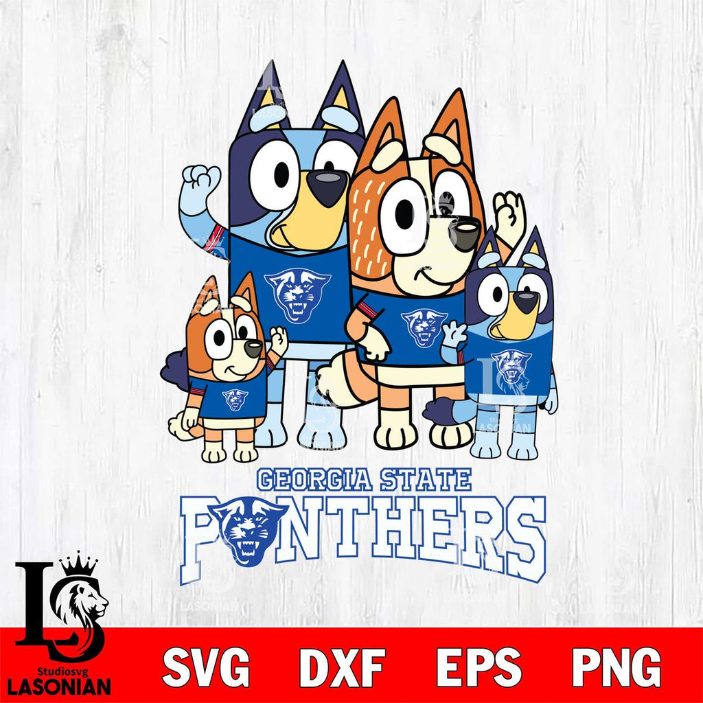 Plus, you can print these designs on a wide range of surfaces such as mugs, t-shirts, tumblers, flags, and more. Unleash your creativity and personalize your world with Georgia State Panthers Bluey & Bingo 7