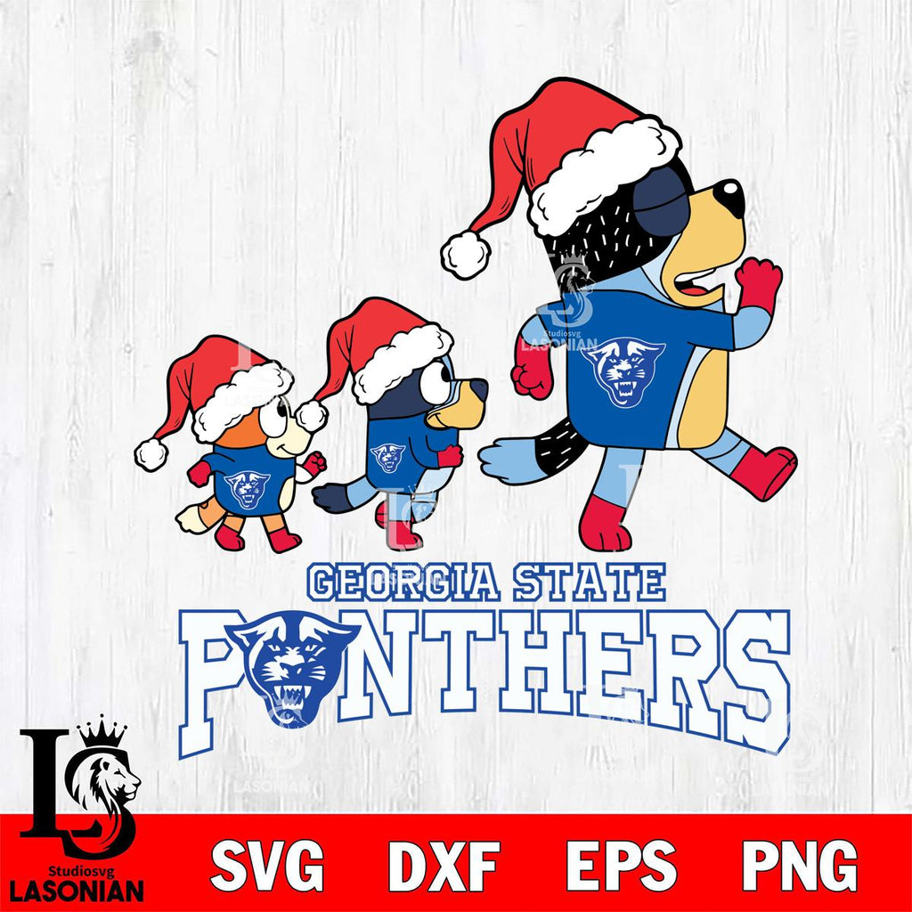 Georgia State Panthers Bluey Family Christmas Svg Eps Dxf Png File, Digital Download