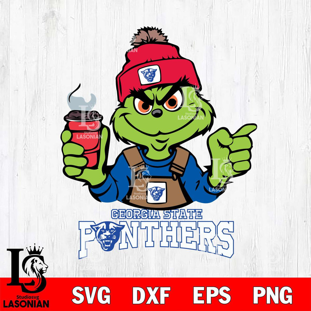 Georgia State Panthers Grinch with coffee Svg Eps Dxf Png File, Digital Download, Instant Download