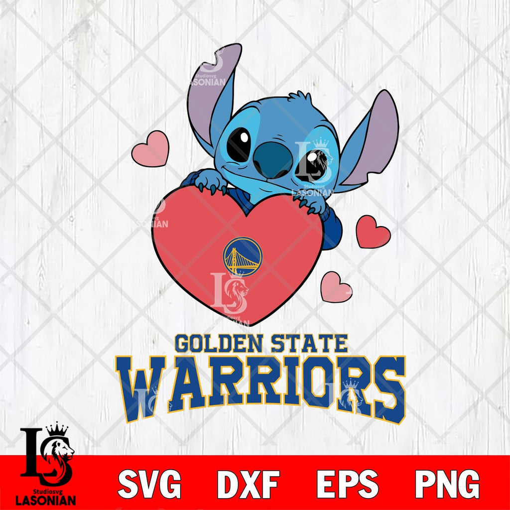 Golden State Warriors Stitch hugging heart File cut , Criucut , Digital Download, NBA SVG DXF EPS PNG PDF File