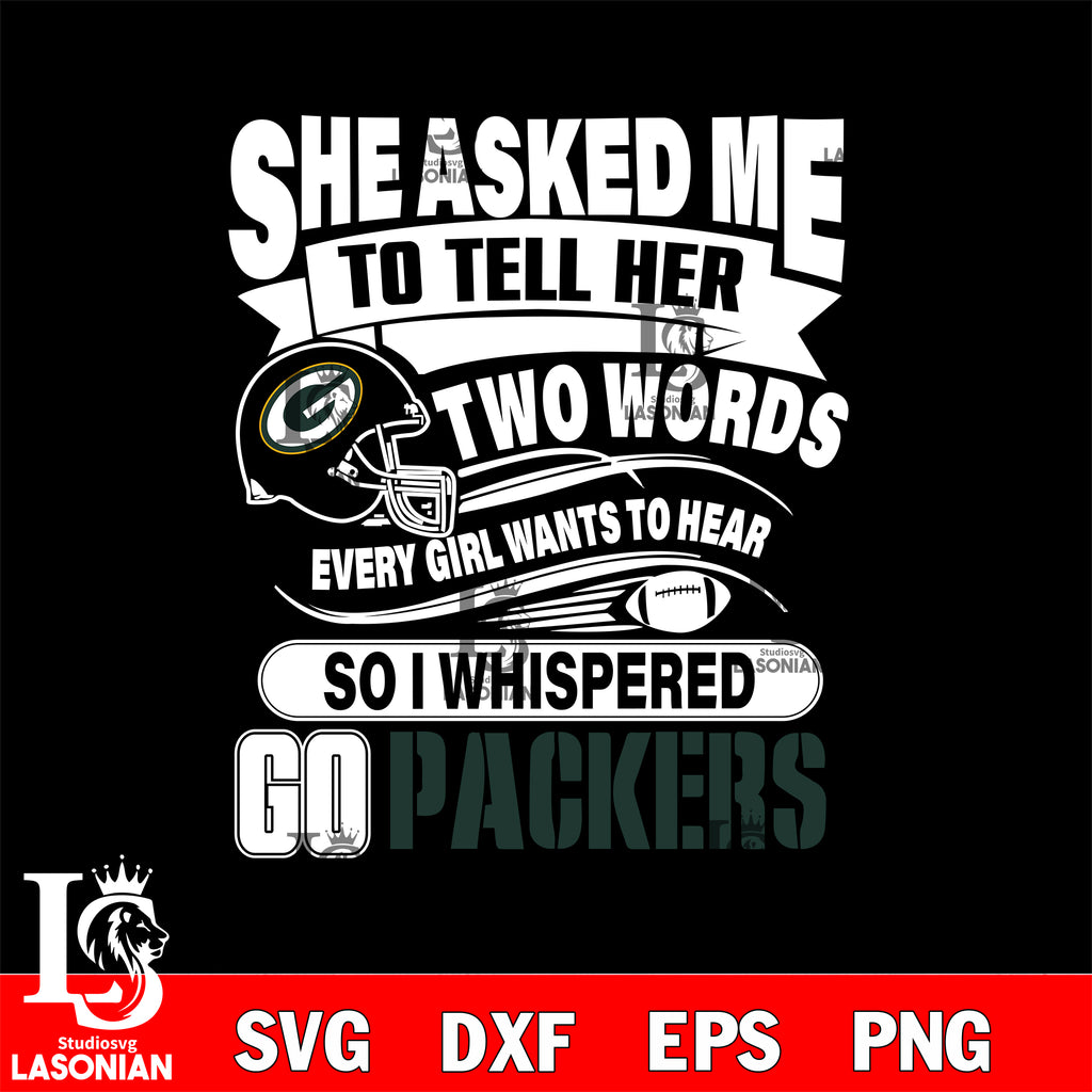 She asked me to tell her two words every girl wants to hear so i whispered go Green Bay Packers svg eps dxf png file, Digital Download , Instant Download
