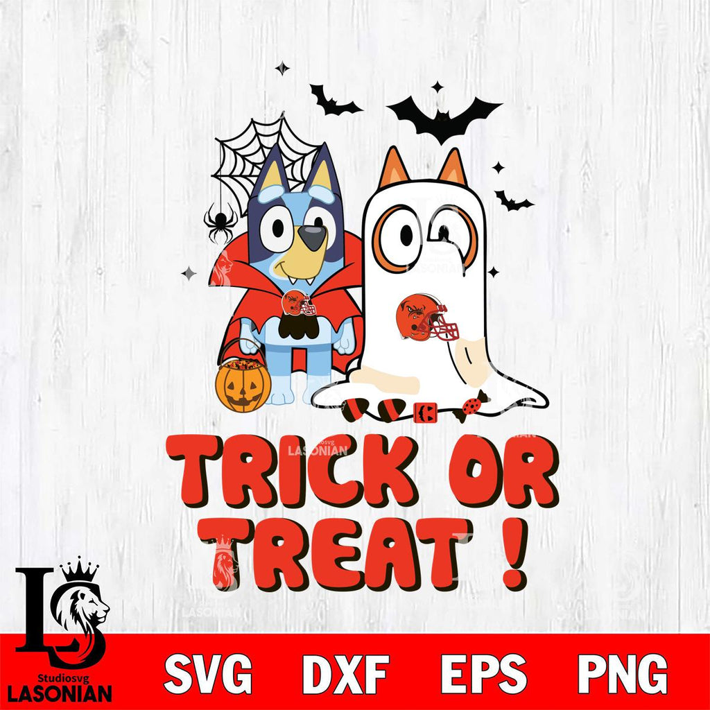 Plus, you can print these designs on a wide range of surfaces such as mugs, t-shirts, tumblers, flags, and more. Unleash your creativity and personalize your world with Cleveland Browns Bluey Trick or Treat Halloween