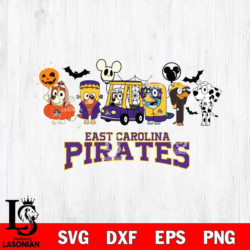 Plus, you can print these designs on a wide range of surfaces such as mugs, t-shirts, tumblers, flags, and more. Unleash your creativity and personalize your world with East Carolina Pirates Bluey Halloween