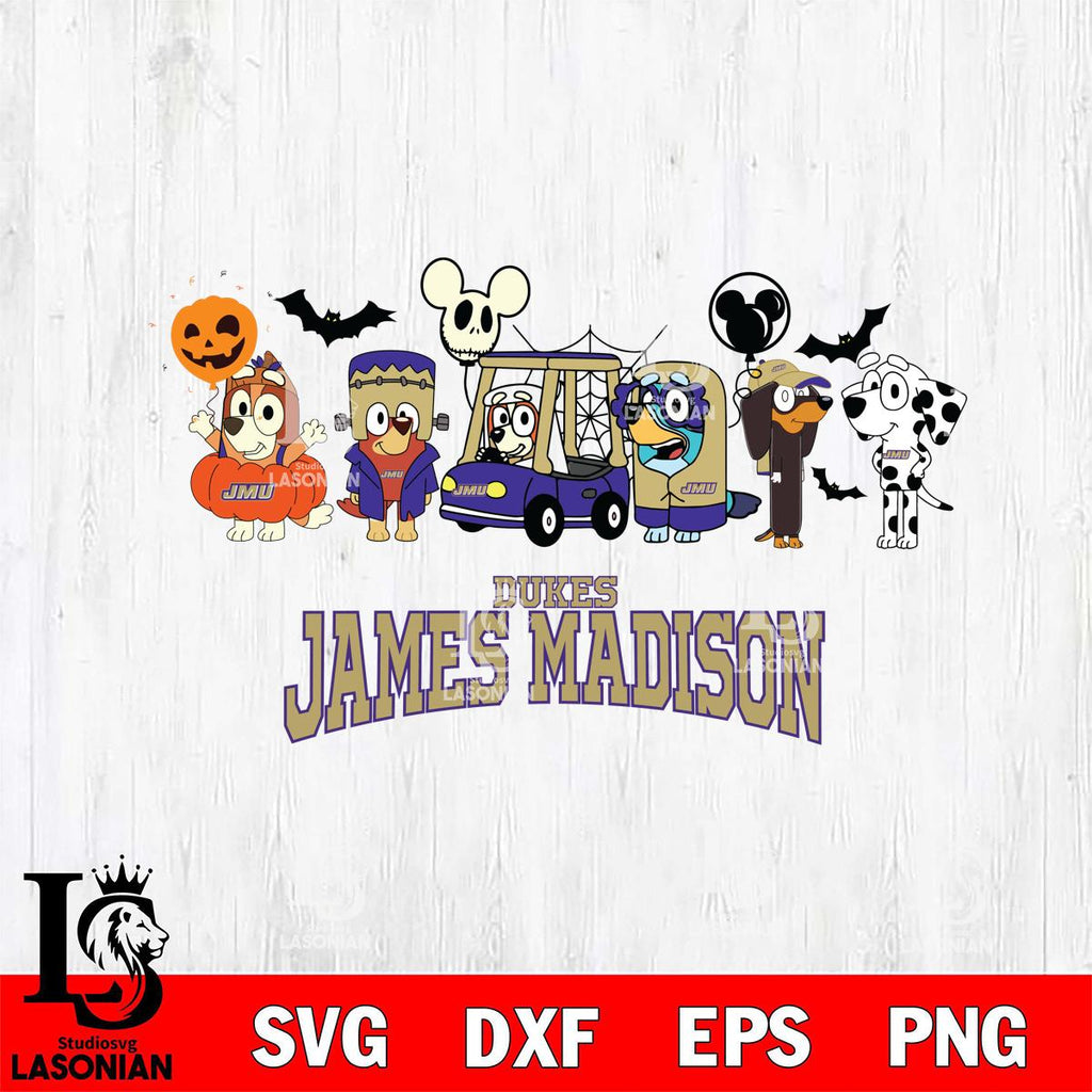 Plus, you can print these designs on a wide range of surfaces such as mugs, t-shirts, tumblers, flags, and more. Unleash your creativity and personalize your world with James Madison Dukes Bluey Halloween