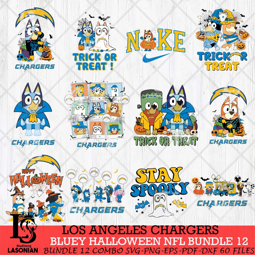 ►With the Los Angeles Chargers Bluey Halloween 12 SVG, you can let your creativity run wild. This INSTANT DOWNLOAD package includes a ZIP folder containing the following: