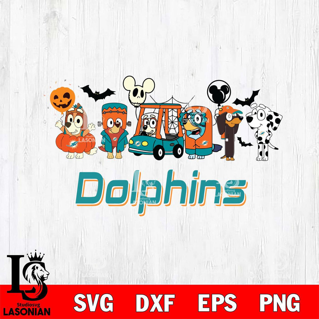 Plus, you can print these designs on a wide range of surfaces such as mugs, t-shirts, tumblers, flags, and more. Unleash your creativity and personalize your world with Miami Dolphins Bluey Halloween