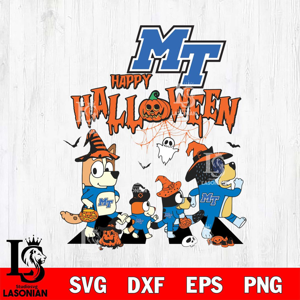 Plus, you can print these designs on a wide range of surfaces such as mugs, t-shirts, tumblers, flags, and more. Unleash your creativity and personalize your world with Middle Tennessee Blue Raiders Bluey Halloween Family