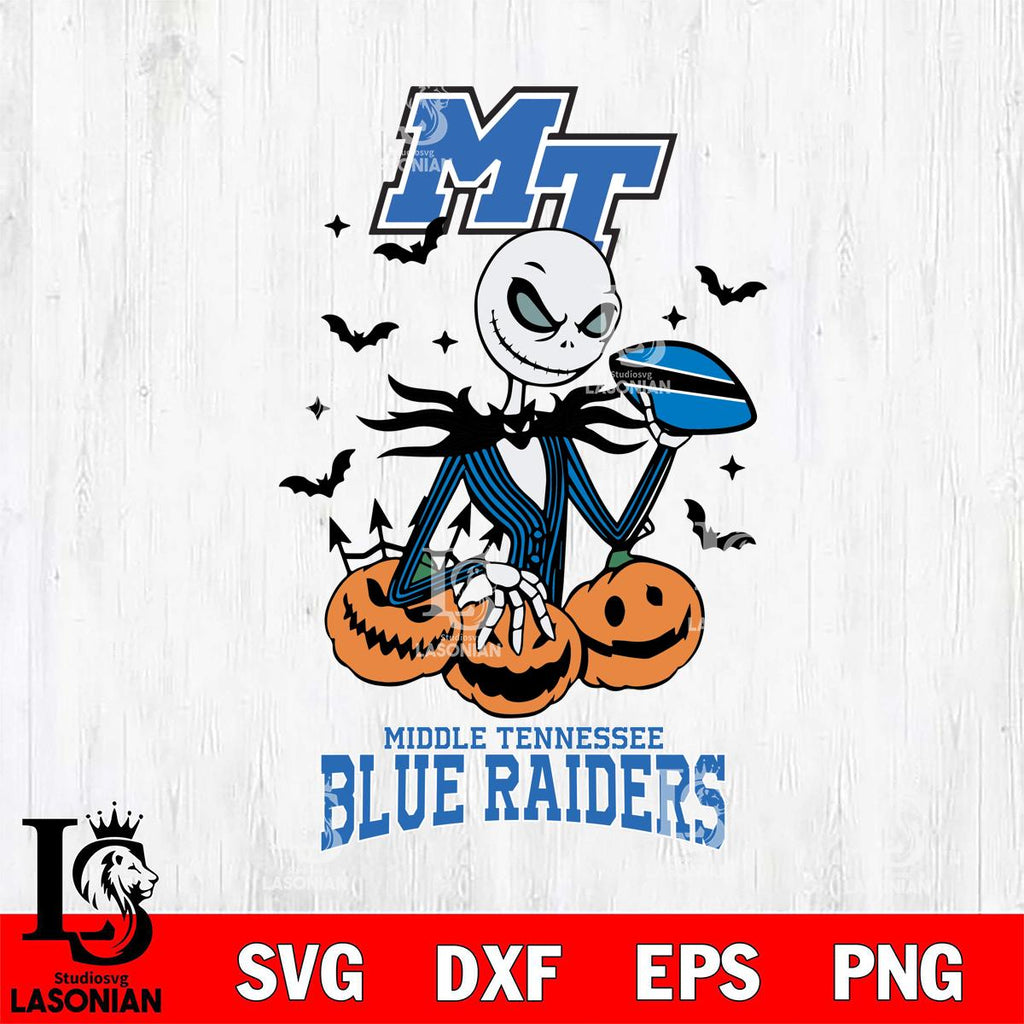 Middle Tennessee Blue Raiders Jack Skellington 2 halloween Svg Eps Dxf Png File, NCAA svg, Digital Download, Instant Download