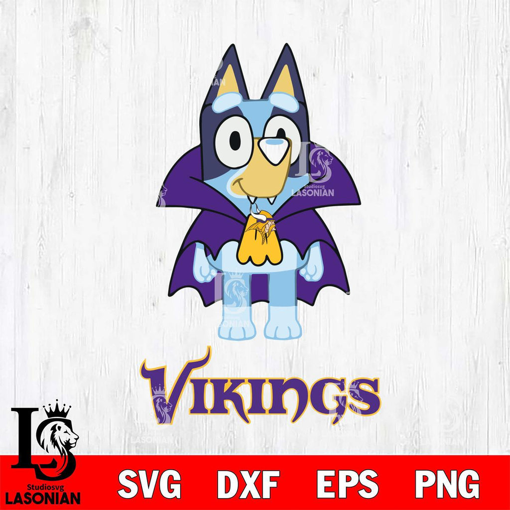 ►With the Minnesota Vikings Bluey Dracula Halloween, you can let your creativity run wild. This INSTANT DOWNLOAD package includes a ZIP folder containing the following: