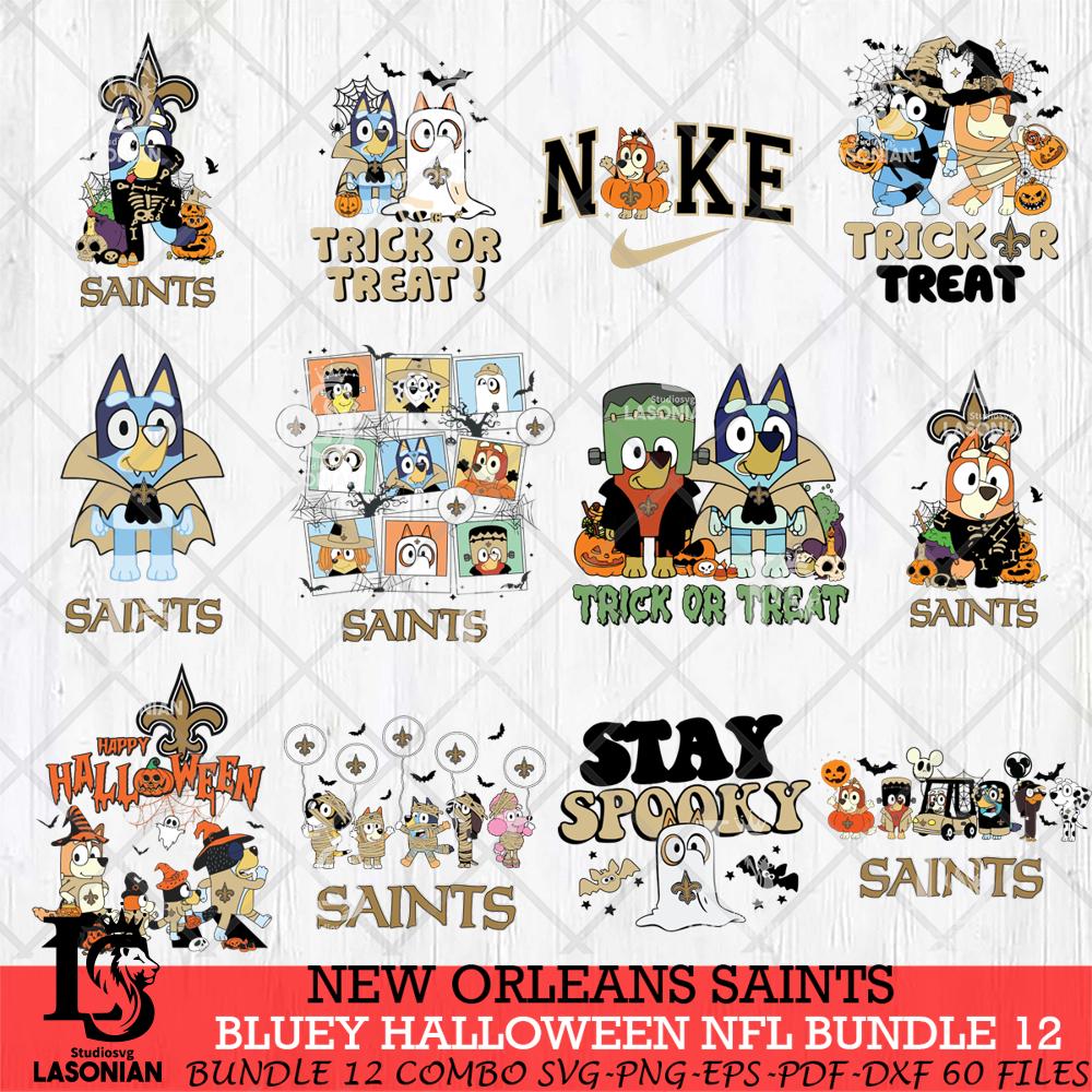 ►With the New Orleans Saints Bluey Halloween 12 SVG, you can let your creativity run wild. This INSTANT DOWNLOAD package includes a ZIP folder containing the following:
