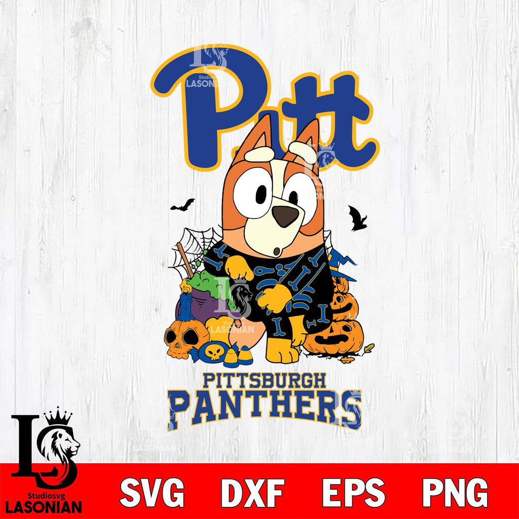 Plus, you can print these designs on a wide range of surfaces such as mugs, t-shirts, tumblers, flags, and more. Unleash your creativity and personalize your world with Pittsburgh Panthers Bluey Halloween NCAA