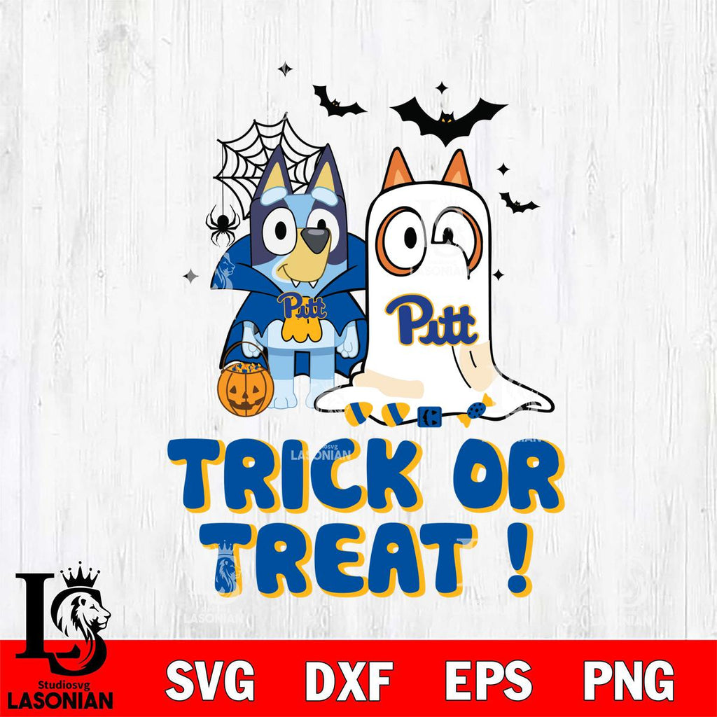 Plus, you can print these designs on a wide range of surfaces such as mugs, t-shirts, tumblers, flags, and more. Unleash your creativity and personalize your world with Pittsburgh Panthers Bluey Trick or Treat Halloween