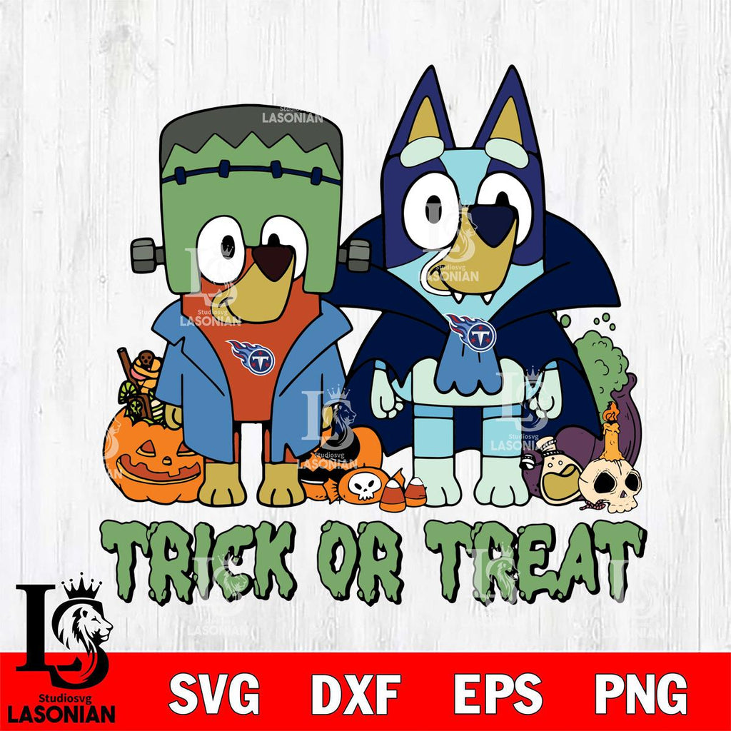 Plus, you can print these designs on a wide range of surfaces such as mugs, t-shirts, tumblers, flags, and more. Unleash your creativity and personalize your world with Tennessee Titans Bluey Halloween Trick or Treat