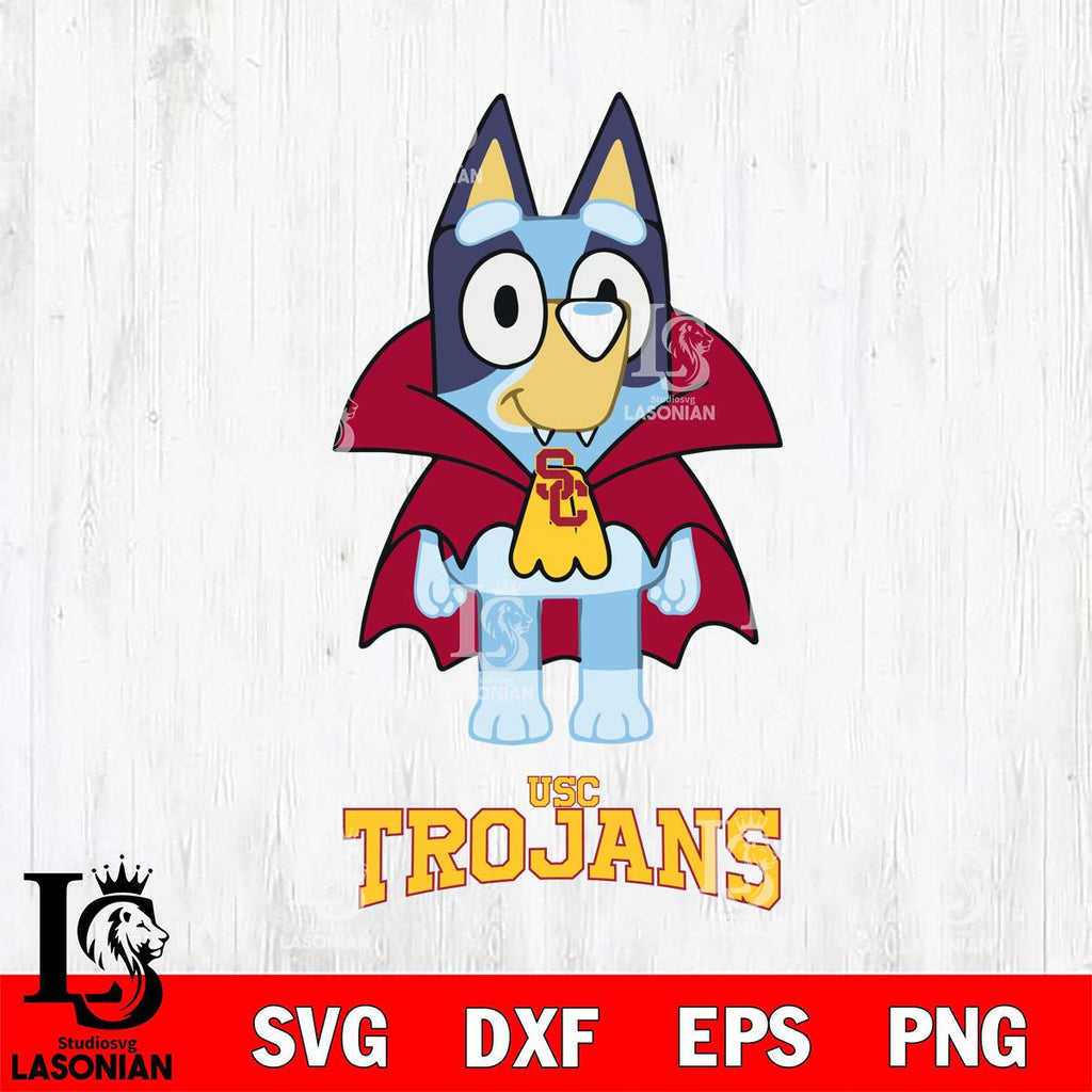 Plus, you can print these designs on a wide range of surfaces such as mugs, t-shirts, tumblers, flags, and more. Unleash your creativity and personalize your world with USC Trojans Bluey Dracula Halloween