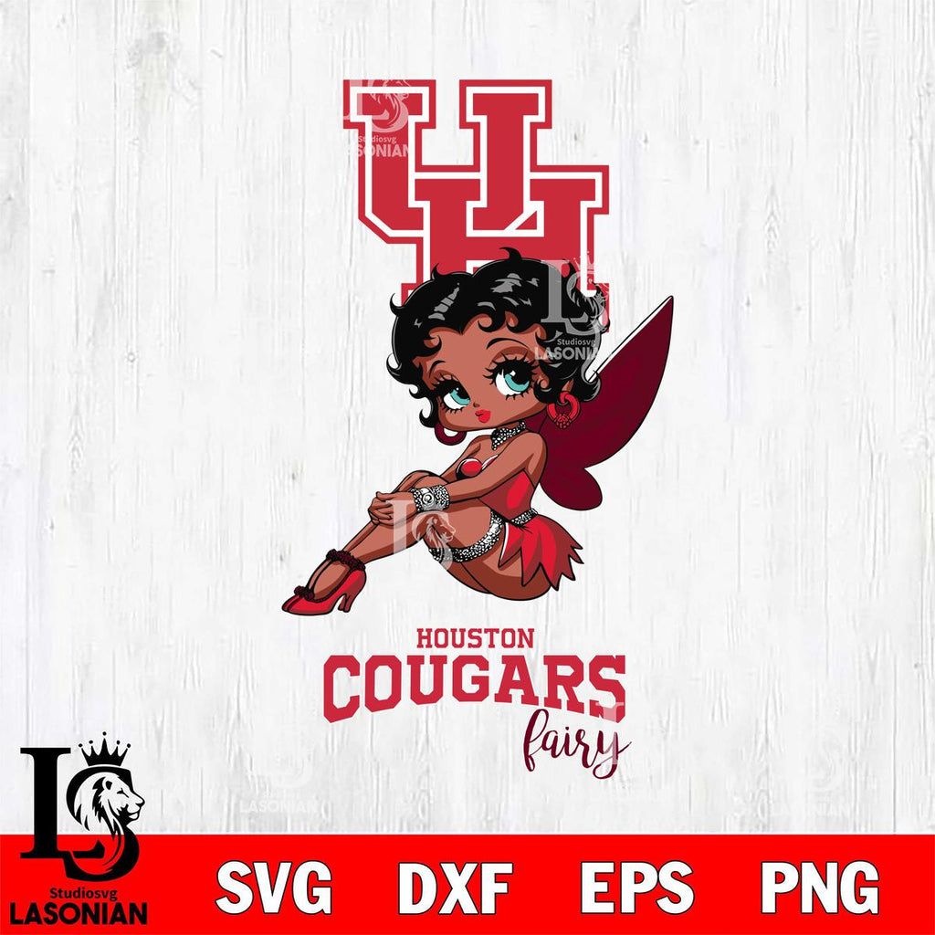Houston Cougars Beauty Black Fairy Betty Boop, Svg Eps Dxf Png File, Digital Download