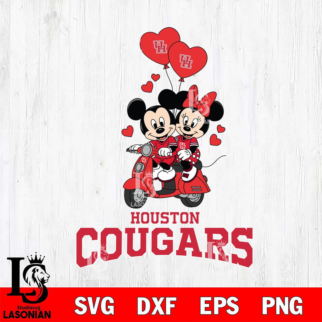 Houston Cougars Mickey and Minnie Mouse Valentine File Cut, NCAA SVG DXF EPS PNG PDF File, Digital Download , Criucut , Silhouette