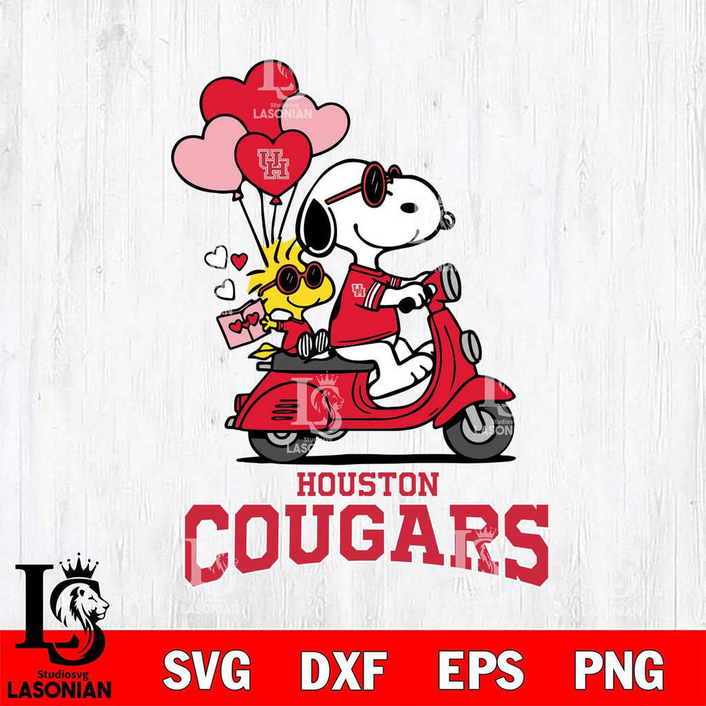 Houston Cougars Snoopy and Woodstock Valentine File Cut, NCAA SVG DXF EPS PNG PDF File, Digital Download , Criucut , Silhouette