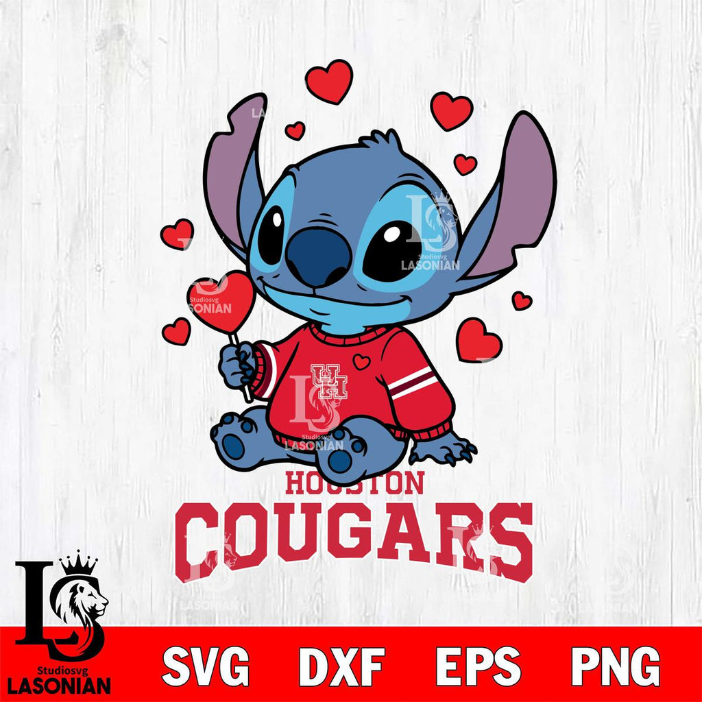 Houston Cougars Stitch Valentine Cute Digital Download, NCAA SVG DXF EPS PNG PDF File, Stitch File cut , Criucut , Silhouette