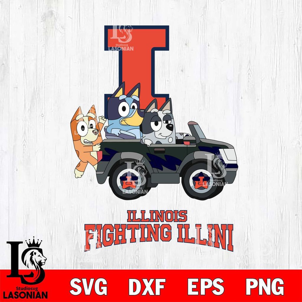Illinois Fighting Illini Bluey friends car Svg Eps Dxf Png File, NCAA svg, Digital Download, Instant Download