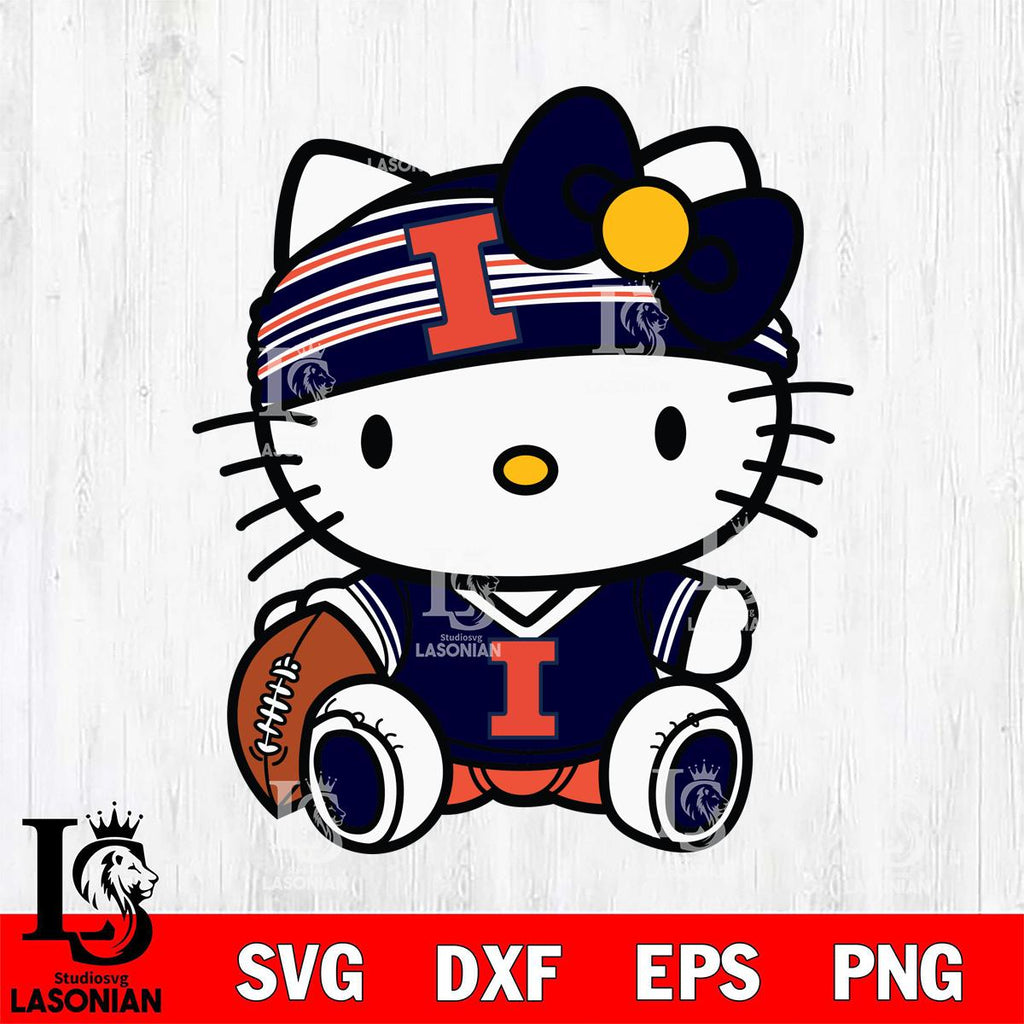Illinois Fighting Illini Cute Hello Kitty Football 12 Svg Eps Dxf Png File, NCAA svg, Digital Download, Instant Download