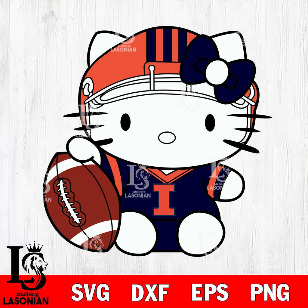 Illinois Fighting Illini Cute Hello Kitty Football 5 Svg Eps Dxf Png File, NCAA svg, Digital Download, Instant Download