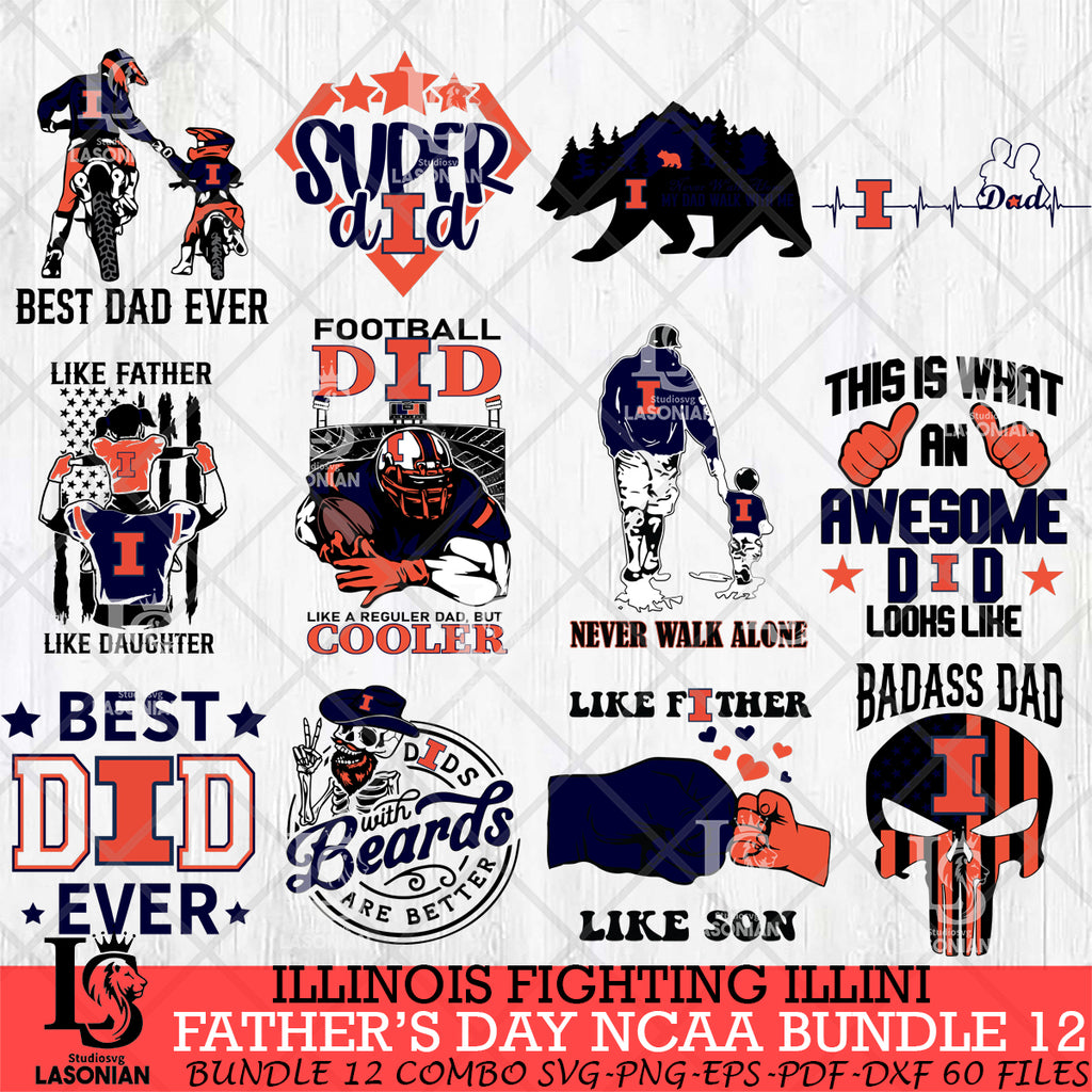 ►With the Illinois Fighting Illini Fathers Day NCAA Bundle 12, you can let your creativity run wild. This INSTANT DOWNLOAD package includes a ZIP folder containing the following: