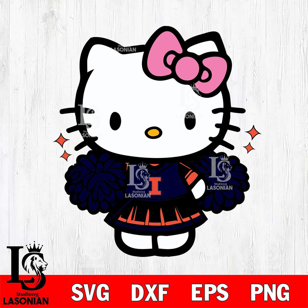 Illinois Fighting Illini Hello Kitty Cheerleader Svg Eps Dxf Png File, Digital Download, Instant Download