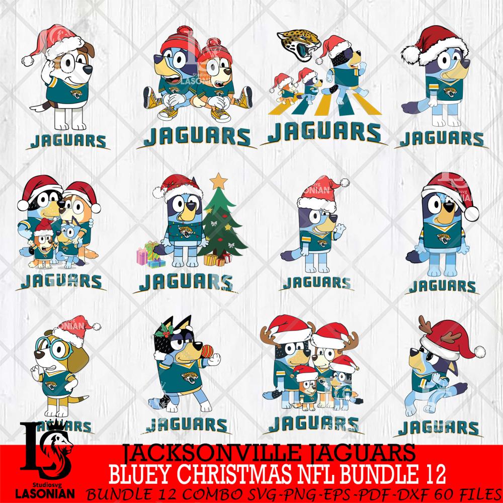 Jacksonville Jaguars Bluey Christmas NFL Bundle 12 Svg Eps Dxf Png File,Cut Svg Files, Digital File, Sublimation