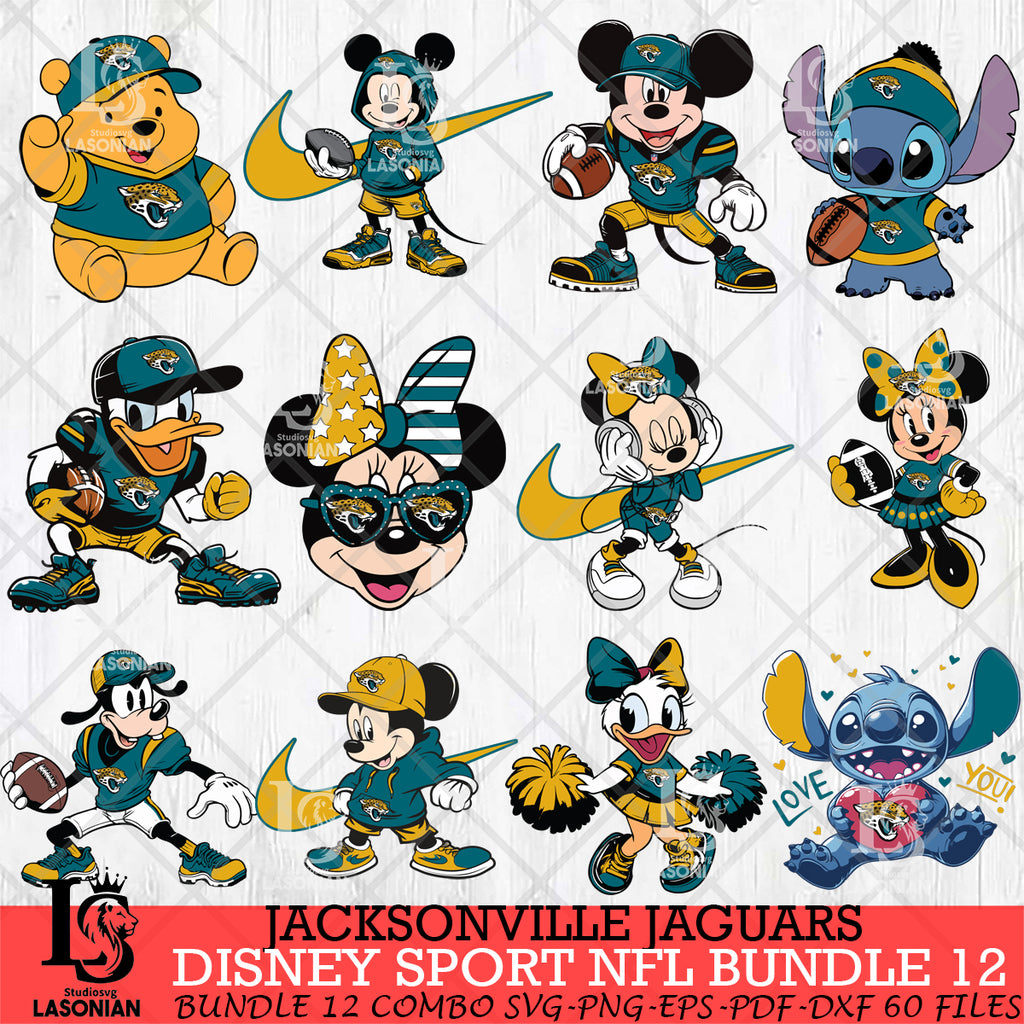 Plus, you can print these designs on a wide range of surfaces such as mugs, t-shirts, tumblers, flags, and more. Unleash your creativity and personalize your world with Jacksonville Jaguars Disney NFL Bundle 12